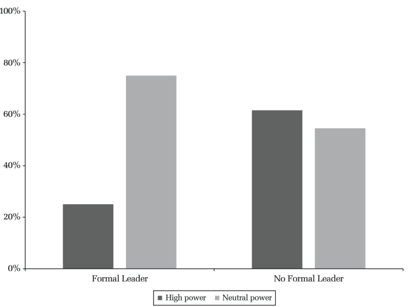 - formal leaders in a high-power condition talked for a higher percentage of the time (32%) compared to neutral-power (19%);